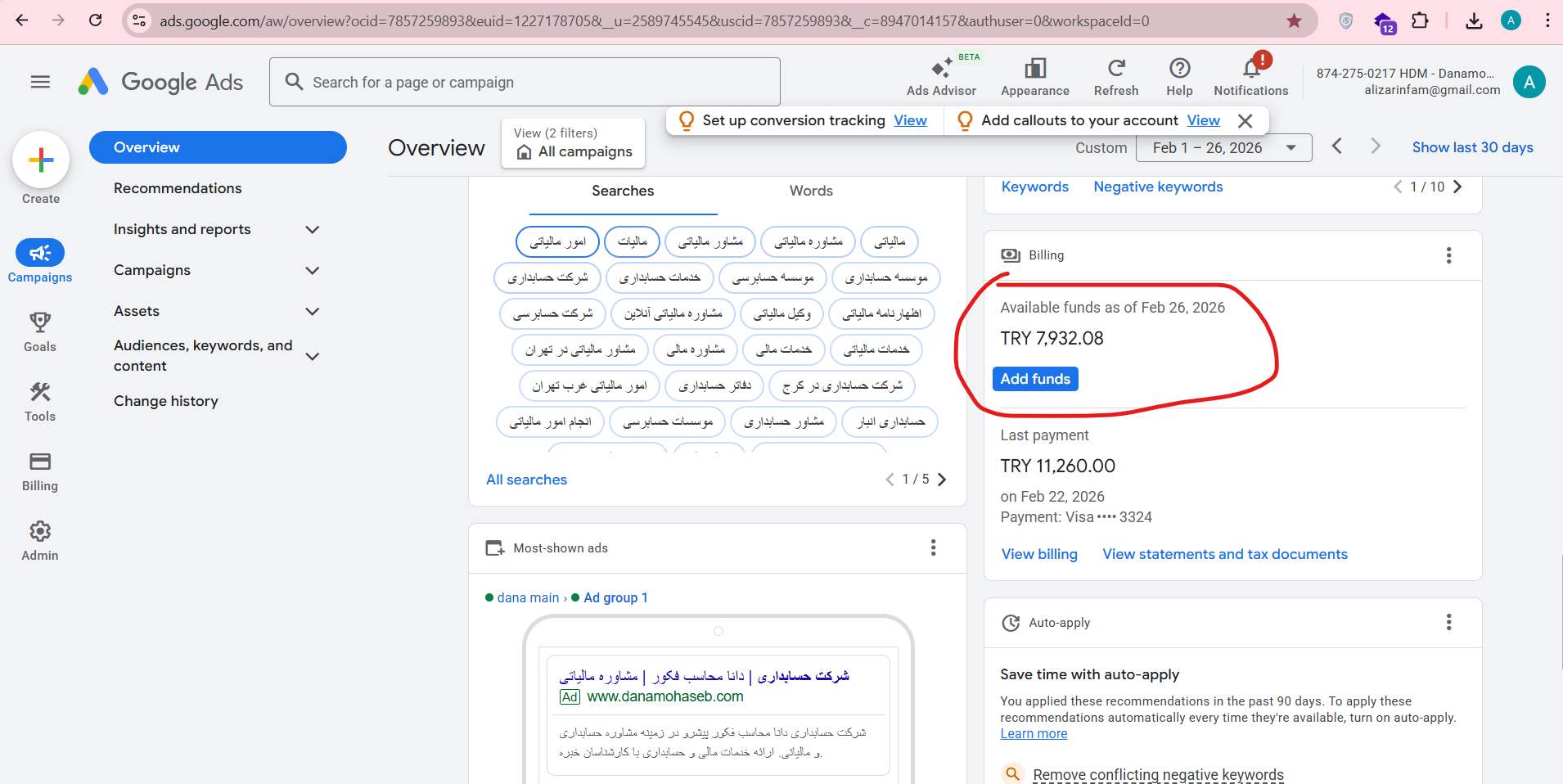 در پنل گوگل ادز دانا محاسب این پیام اومده (پیوست)